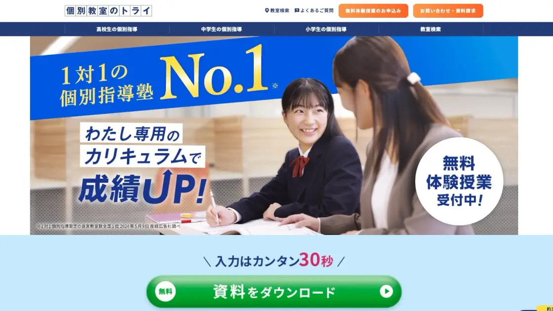 教えるセンセ子供に通わせるには個別教室のトライが最適です。個別指導なので、一人ひとりのサポートが充実しています